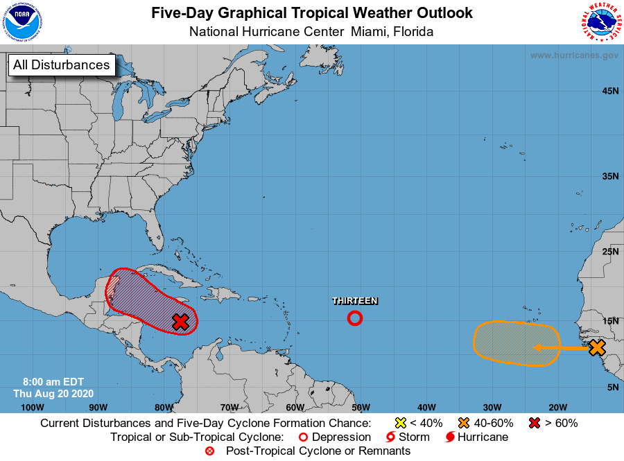 HOLT, Fla., Aug. 20, 2020—Tropical depression lucky number 13 formed in the Atlantic Ocean late last night.