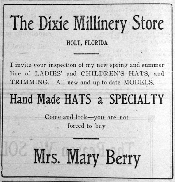 Mary Berry ran a hat store in Holt in 1922. And remember, looks are free.
