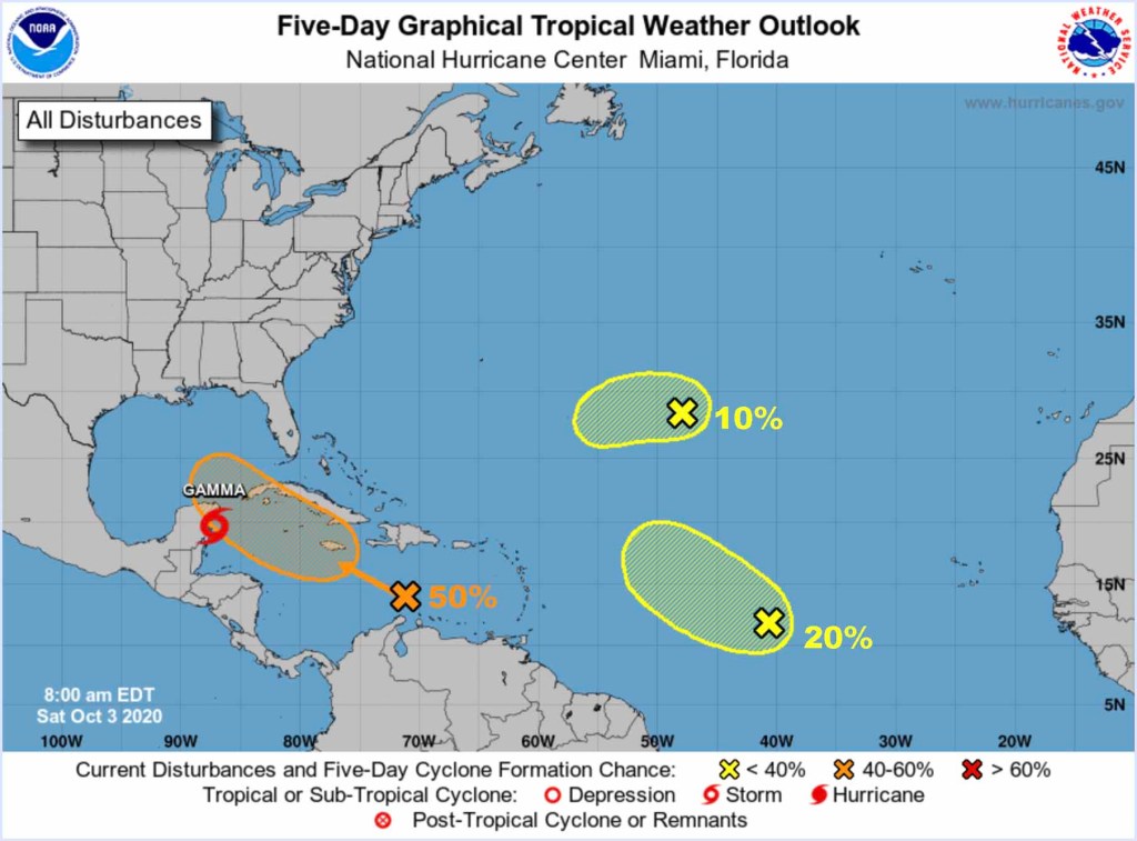 Meanwhile, satellite imagery and reports from an Air Force Reserve Hurricane Hunter mission indicate Gamma is strengthening.