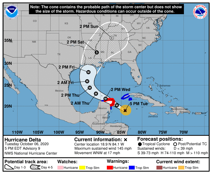 However, regardless of Delta’s final landfall location and intensity, the projected large size of the hurricane is likely to result in a significant storm surge and wind event for portions of the northern Gulf coast later this week, according to the NHC.
