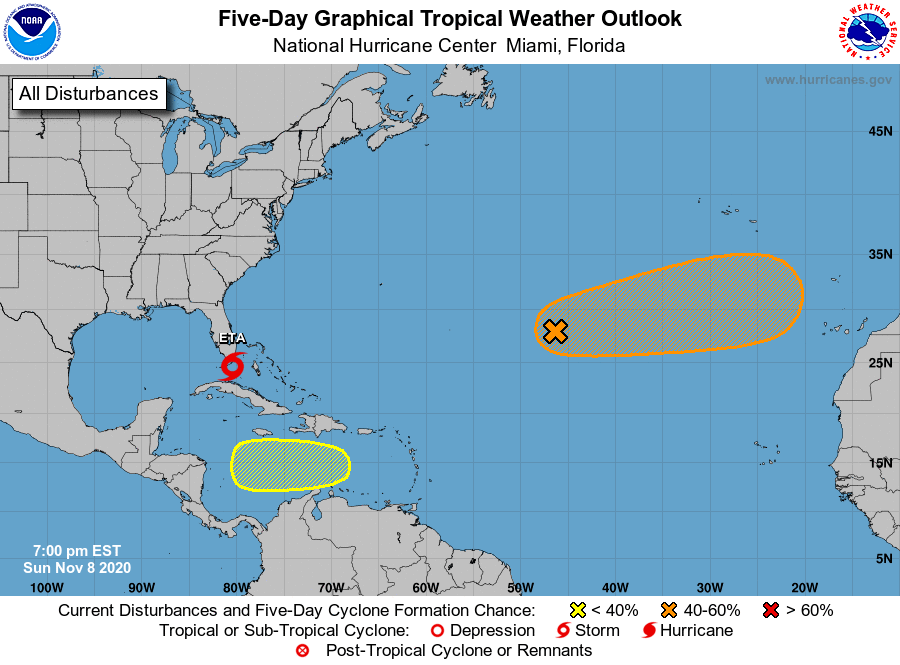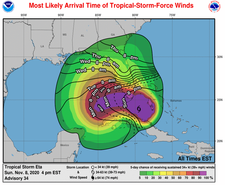 HOLT, Fla., Nov. 8, 2020—Tropical Storm Eta is forecast to re-strengthen to a hurricane the next day or so after it moves over the southeastern Gulf of Mexico.