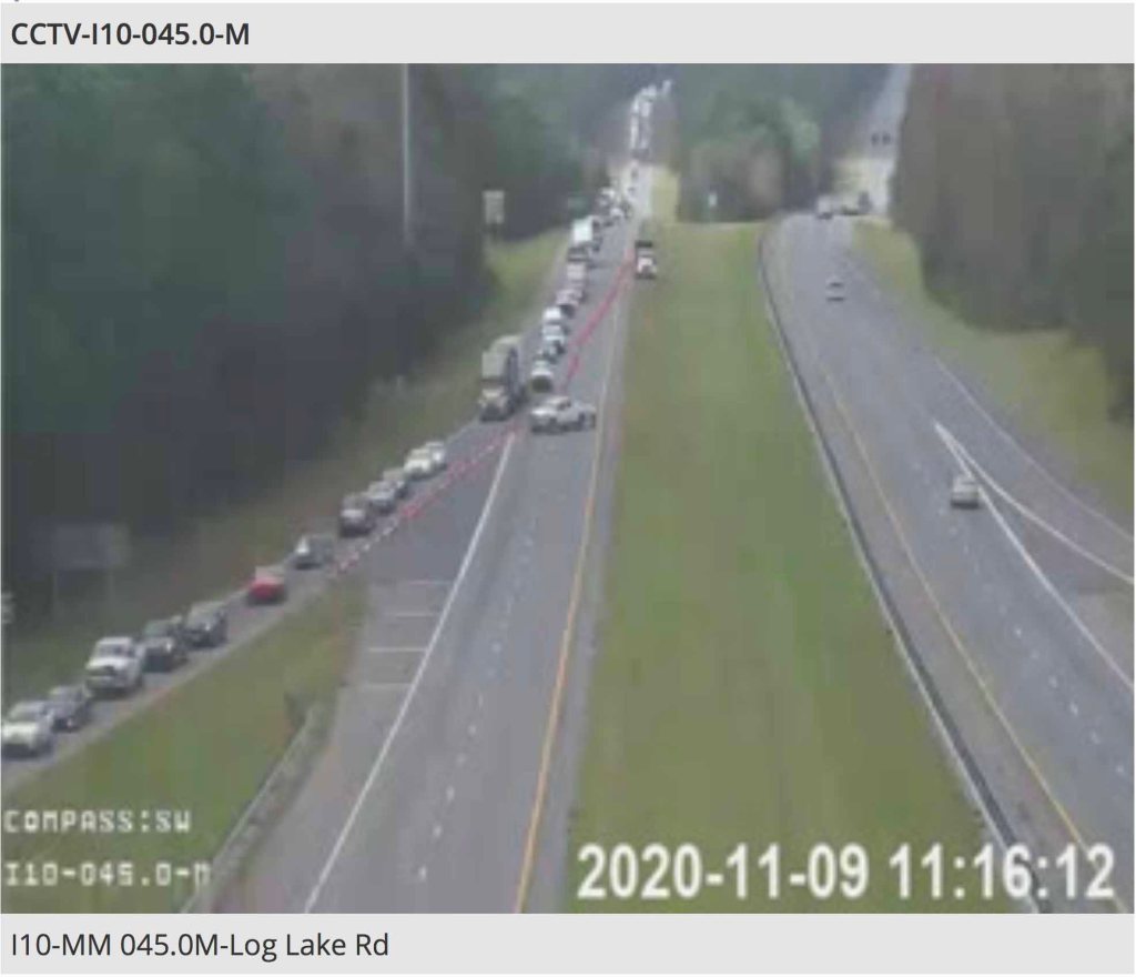 Traffic on Hwy 90 eastbound is backed up around Galliver Cutoff toward Crestview.