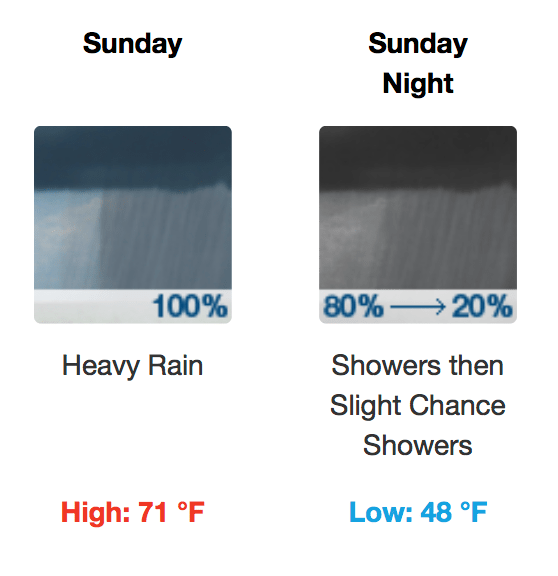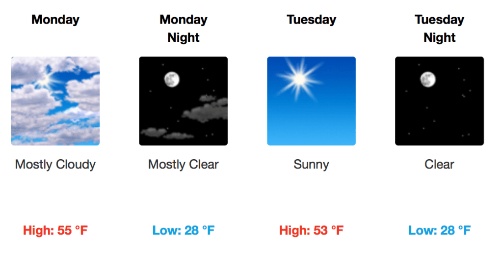 Sunday night will be the warmest night with low temperatures around 48 degrees.