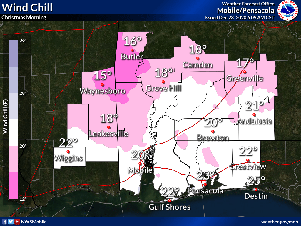 For Christmas, temperatures will plummet into the 20s. Wind chill will cause the temps to dip into the teens to low 20s Christmas morning.