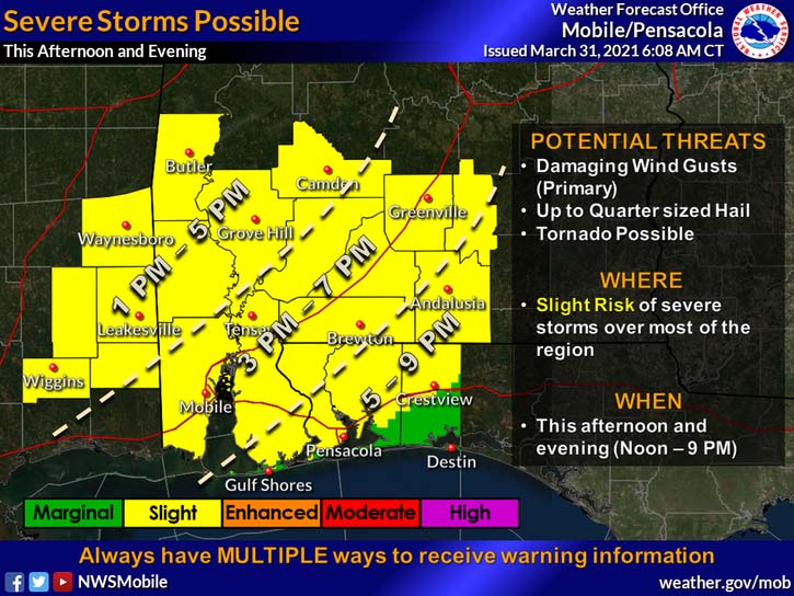 HOLT, Fla., March 31, 2021—A strong cold front is expected to bring the possibility of more unsettled weather today according to the National Weather Service.