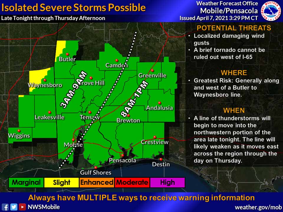 HOLT, Fla., April 7, 2021—Another 1-2 punch of severe weather is possible tonight and Friday into Saturday with heavy rainfall into the weekend.