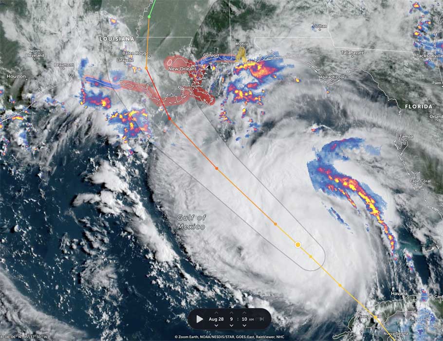HOLT, Fla., Aug. 28, 2021—The center of Hurricane Ida is now over the very warm waters of the Gulf of Mexico.