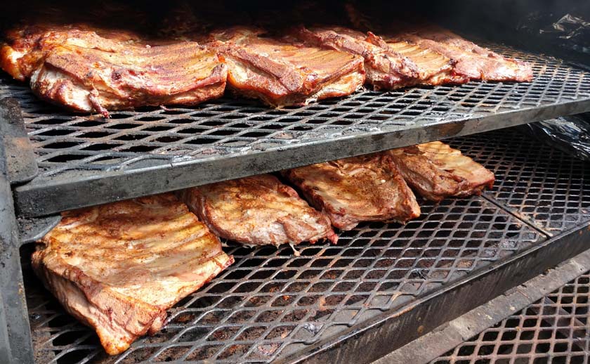 While sizes vary, each rack weighs about 4.5-5 pounds prior to smoking. By the time they come out of the smoker, they’re hot and juicy, ready for a feast.