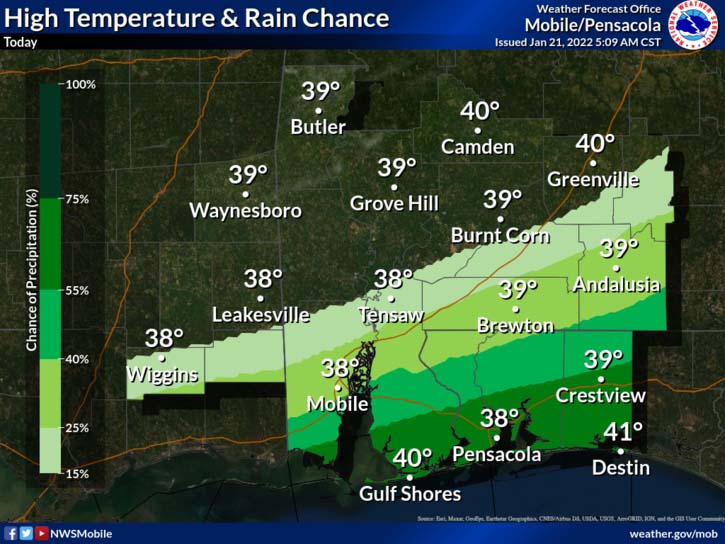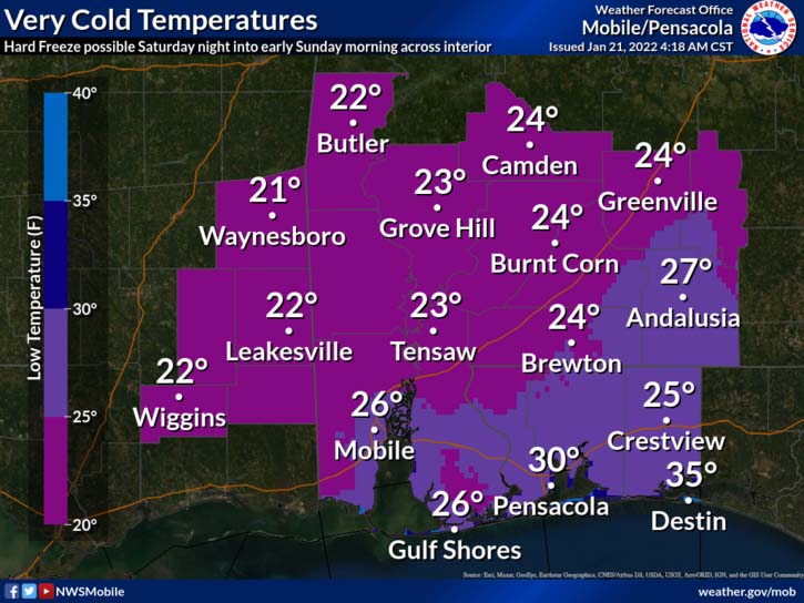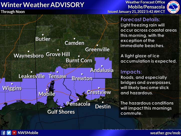 HOLT, Fla., Jan. 21, 2022—The National Weather Service expanded its winter weather advisory to include Okaloosa County this morning.