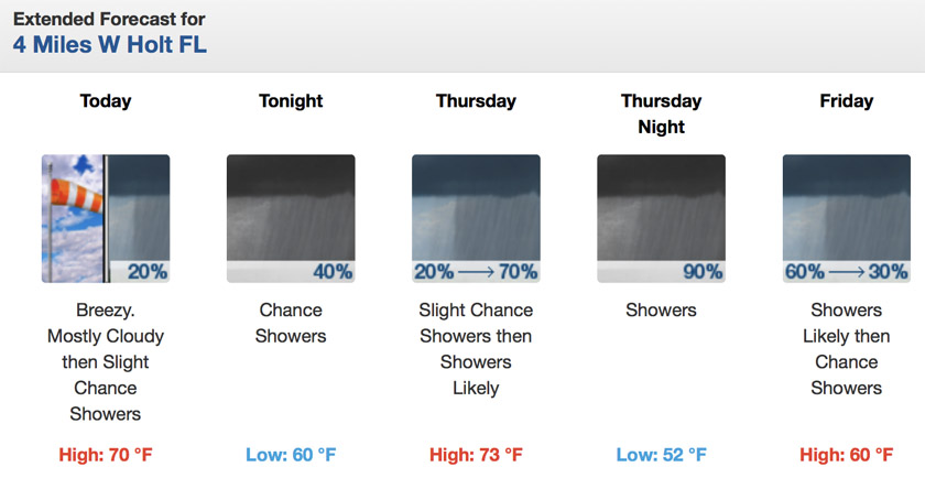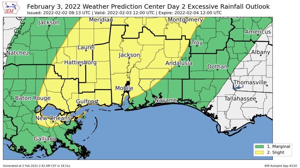 HOLT, Fla., Feb. 2, 2022—Isolated severe thunderstorms are possible tomorrow as a cold front approaches from the northwest.