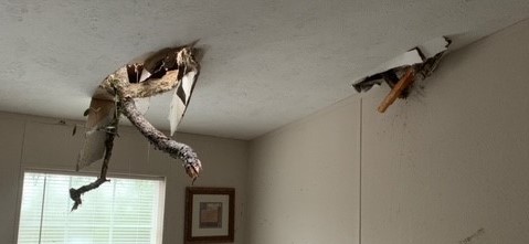 “Part of my roof is in my husband’s cousin’s yard on Roxy Lane,” she said from New York where she’s visiting her mother.