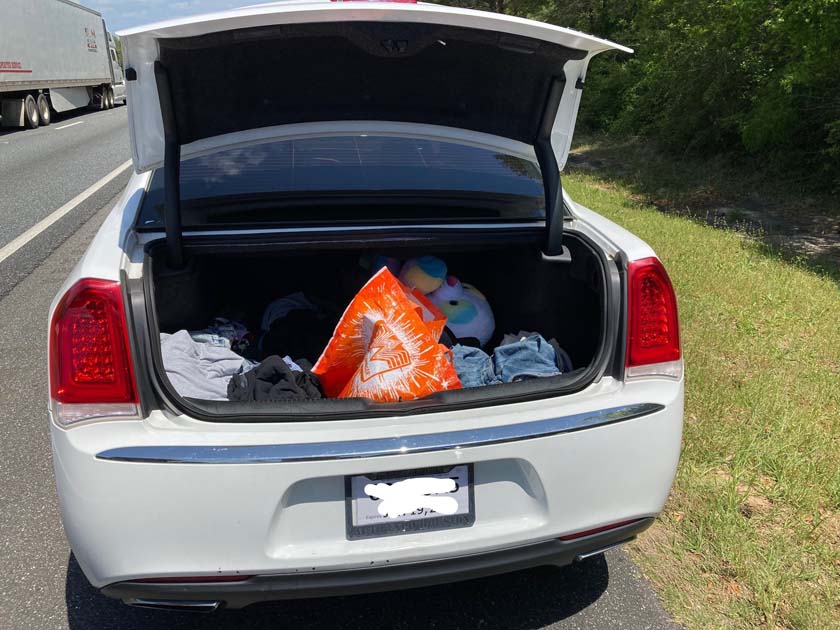 A parked Florida Highway Patrol trooper saw a white Chrysler 300 and a black Dodge Challenger traveling eastbound on I-10 with similarly matching Texas temporary tags that were not in the current temp tag format or matched vehicle information, according to a FHP news release.