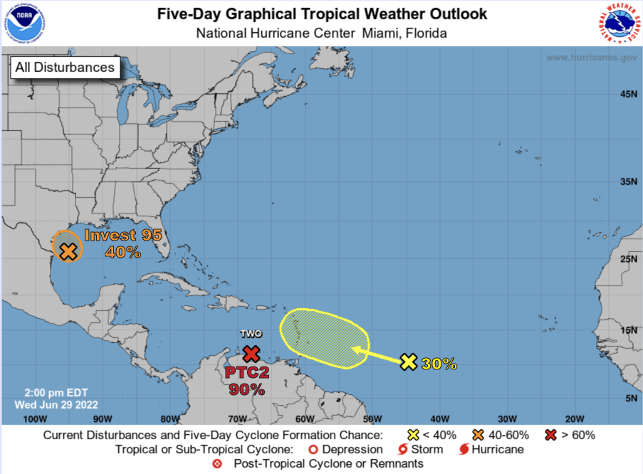 HOLT, Fla., June 29, 2022—The National Hurricane Center is watching three systems in the Atlantic Ocean and Gulf of Mexico.