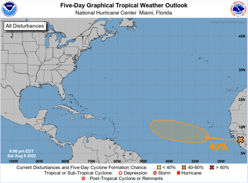 HOLT, Fla., Aug. 6, 2022—A tropical wave is forecast to move off Africa’s west coast tonight and early tomorrow.