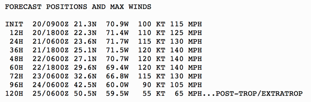Strengthening is forecast for the storm to reach category 4 intensity with winds of 140 mph in the next 36 hours.