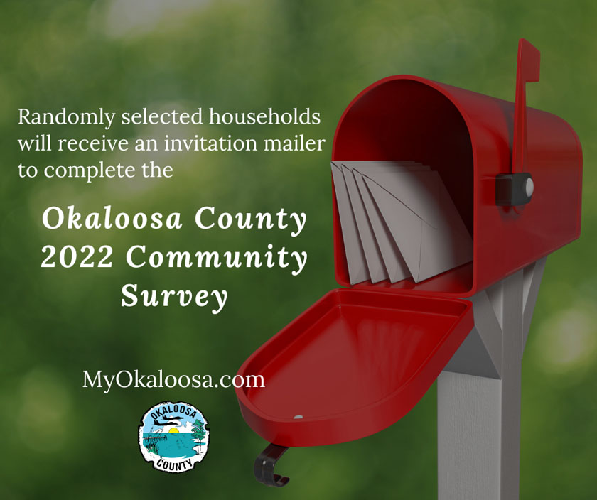 “We are excited to be conducting this survey,” says Okaloosa County Board of County Commissioners Chairman Mel Ponder. “This survey will help Okaloosa County staff and board identify priorities for the community and improve the quality of life in Okaloosa County.”