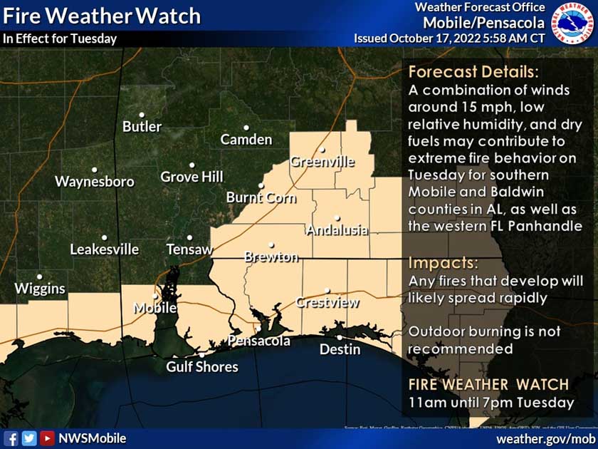 HOLT, Fla., Oct. 17, 2022—This week brings a little bit of everything except tropical weather as the end of the hurricane season gets closer to Nov. 30.