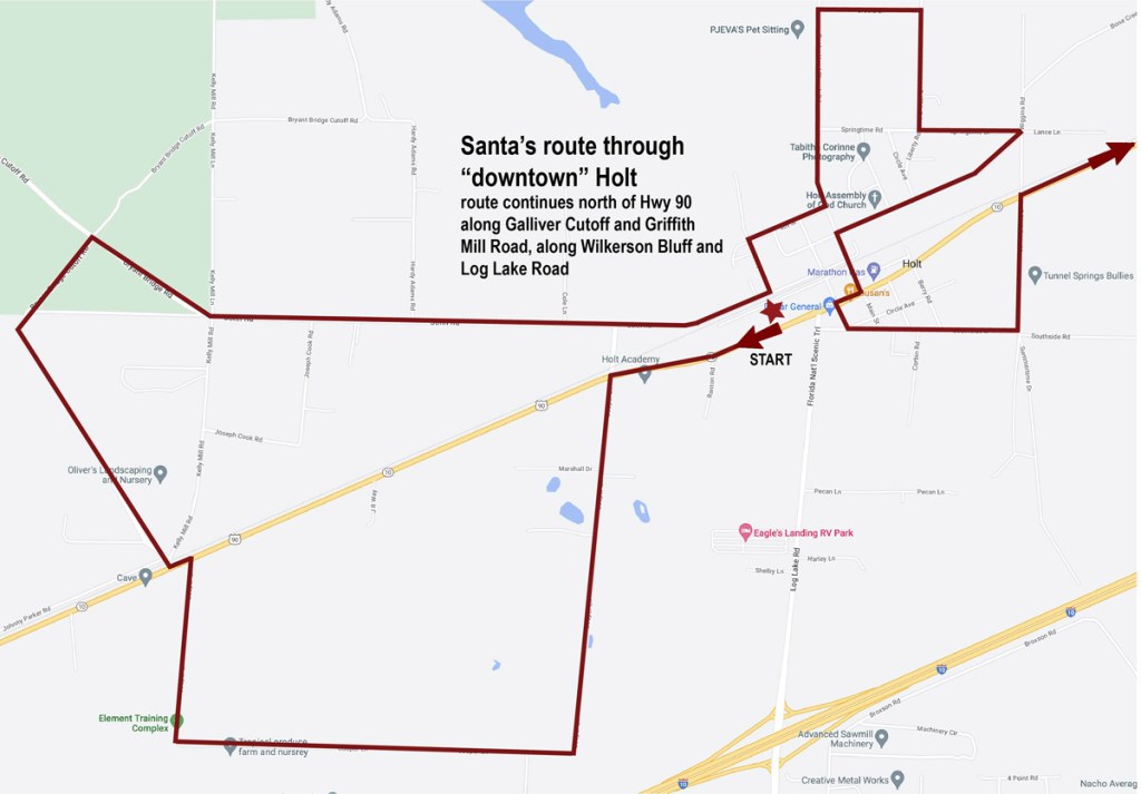 HOLT, Fla., Dec. 16, 2022—Santa Claus is making the rounds in Holt tomorrow with the help of the Holt Fire District.