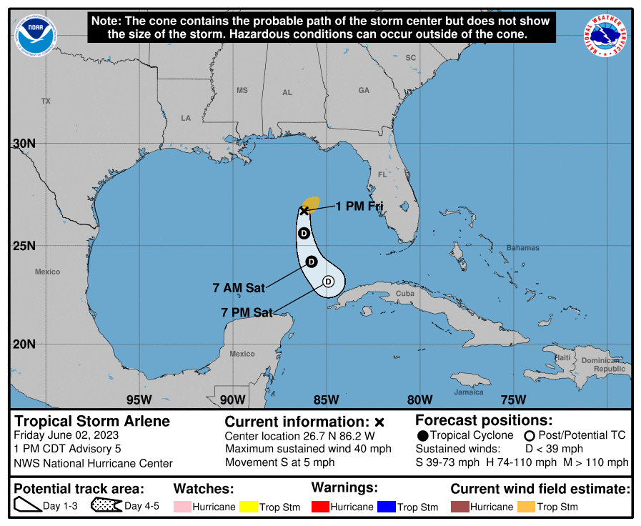 HOLT, Fla., June 2, 2023—The first named storm of the 2023 Atlantic hurricane season has formed in the Gulf of Mexico.