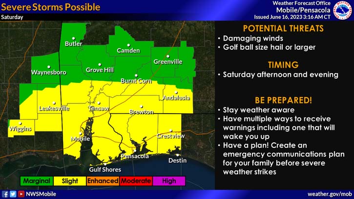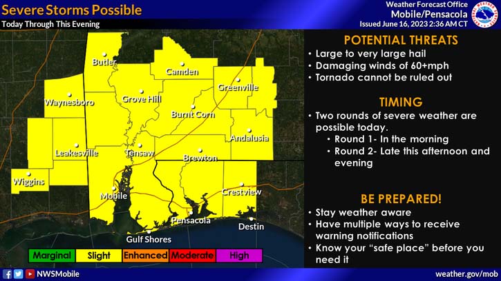 HOLT, Fla., June 16, 2023—Yet another day of severe weather is forecast for today.