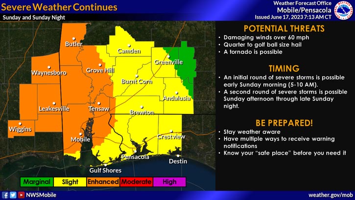HOLT, Fla., June 17, 2023—Today marks the sixth consecutive day of severe weather following on the heels of a turbulent Friday.