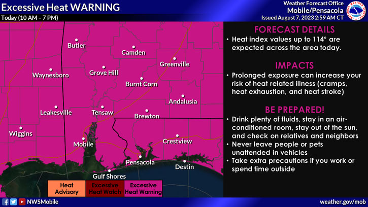 HOLT, Fla., Aug. 7, 2023—Heat and storms are in the forecast for today and tomorrow.
