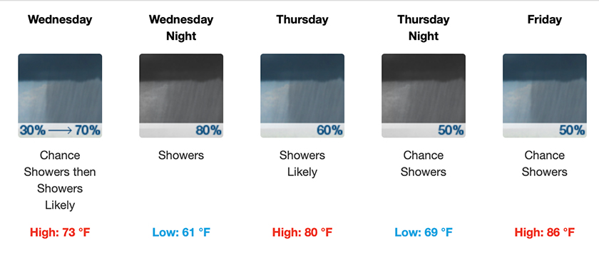 The forecast for Thursday and Friday include the possibility of thunderstorms.