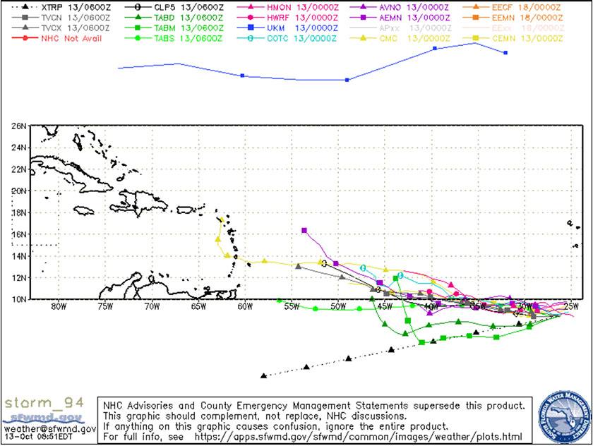 HOLT, Fla., Oct. 13, 2023—Invest 94 is slowly but steadily making its way westward across the southern tropical Atlantic Ocean.