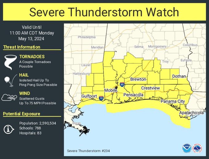 HOLT, Fla., May 13, 2024— Another day of severe weather is possible today with the most severe occurring over northwest Florida.