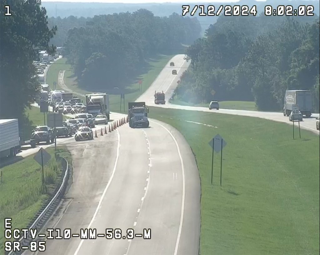 Westbound traffic on I-10 is backed up about a mile and a half east of the Crestview exit.