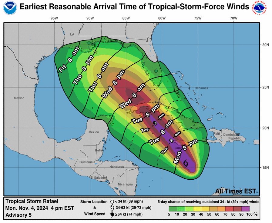 HOLT, Fla., Nov. 4, 2024—The National Hurricane Center is now issuing advisories for Tropical Storm Rafael in the Caribbean Sea.