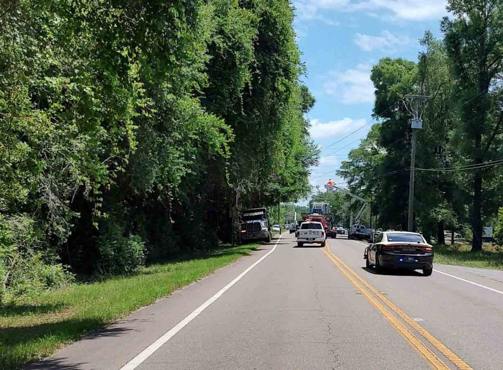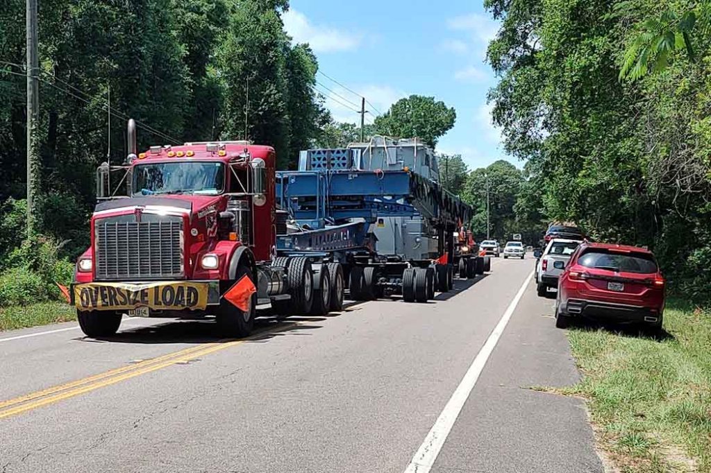The semi pulling what is considered a super load was escorted by four Florida Highway Patrol cars as well as lineman bucket trucks to lift traffic lights and other wires crossing the highway due to the height of the load. This included the flashing light at Log Lake Road and Hwy 90.