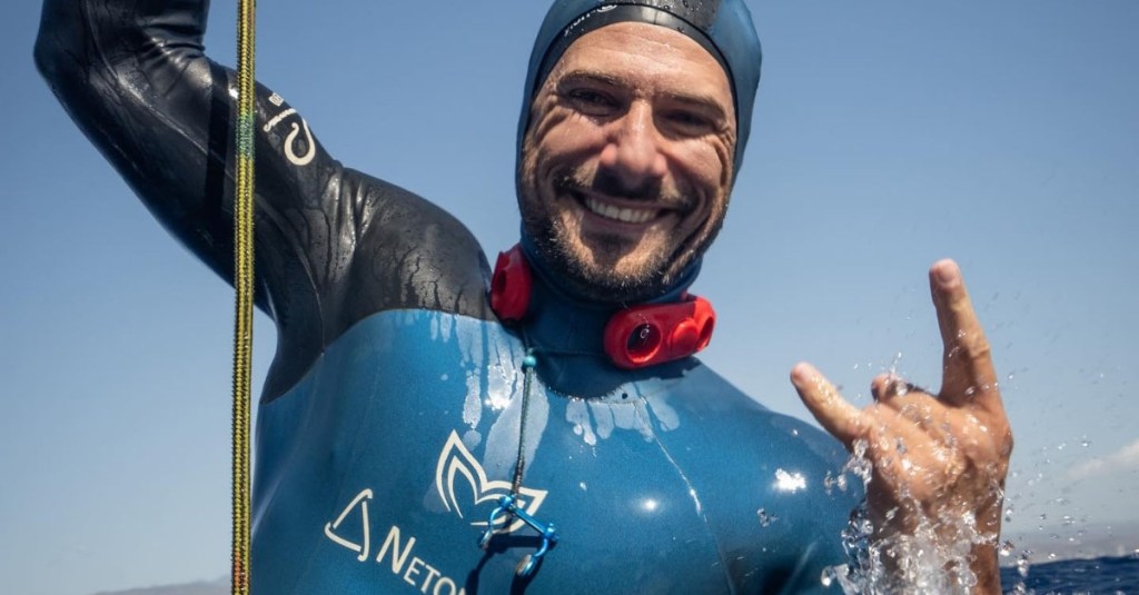 Free diver shatters underwater record
