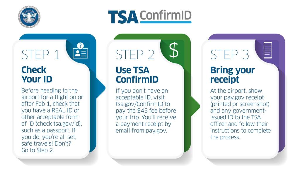 Travelers must bring a printed or electronic copy of the TSA ConfirmID payment to present at the TSA checkpoint each time if traveling without an acceptable ID during the 10-day period.