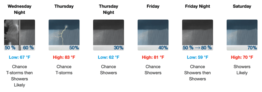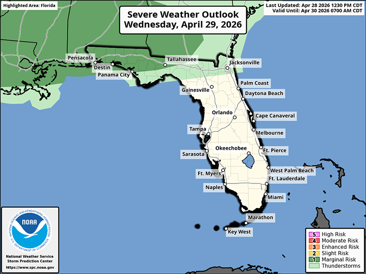 HOLT, Fla., April 28, 2026—Scattered to locally numerous showers and storms are expected to develop each day starting today and lasting through Saturday.